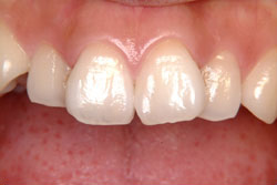 保険治療で行うプラスチックによる修復物は透明感がないために自分の歯と違いがはっきりとわかります。当院では、サンライズセラミックやメタルボンドと呼ばれるセラミックを用いたかぶせものを行い、自分の歯と見分けがつかないきれいな歯をよみがえらせる修復を行います。