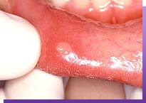 義歯の一部が強く歯肉に当たっていた場合、その部位が白っぽくなったり、傷ができたりします。出力を抑えてレーザー照射することでその治りを早くし、また、痛みは瞬時に消えてしまいます。